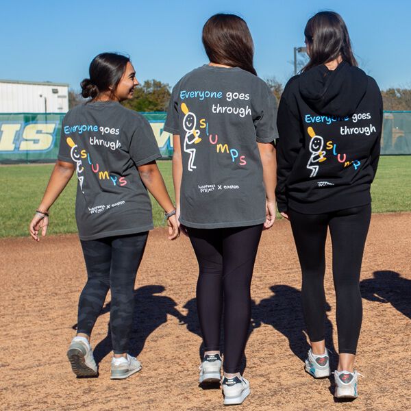 We partnered with Happiness Project to create this unique line of products to help bring awareness to mental health in sports. Our goal is to create designs that inspire ball players to find happiness in the game they love, and to remember they don't have to go through their journey alone.